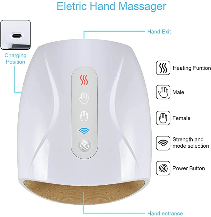 - Intuitive Display of Keys: 3 Massage Intensities; 2 Hand Size Options; 2 Levels of Heat - 38°C-43°C/ 100℉-118℉